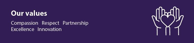 At the heart of our values is compassion. We care for some of the sickest and most vulnerable people in our communities. We treat each person with respect and dignity. We do this by caring for the whole person, when and where they need it most. Partnership is at the core of how we work. We empower patients, families and our teams to do great work together, and with our communities. The pursuit of excellence drives everything we do. We will be good stewards of resources while continually enhancing the quality of care, research and education we provide. Research and innovation reflect our courage to try new things, challenge what we know, create new knowledge and transform health care.