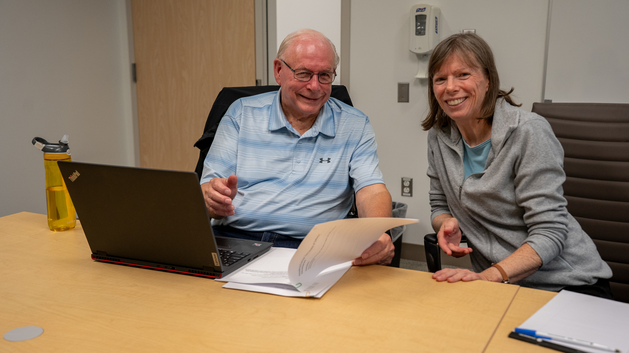 Patient John More and Speech Language Pathologist Theresa Whalen