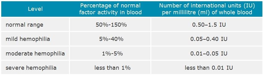 Gravités de l’hémophilie (en anglais)