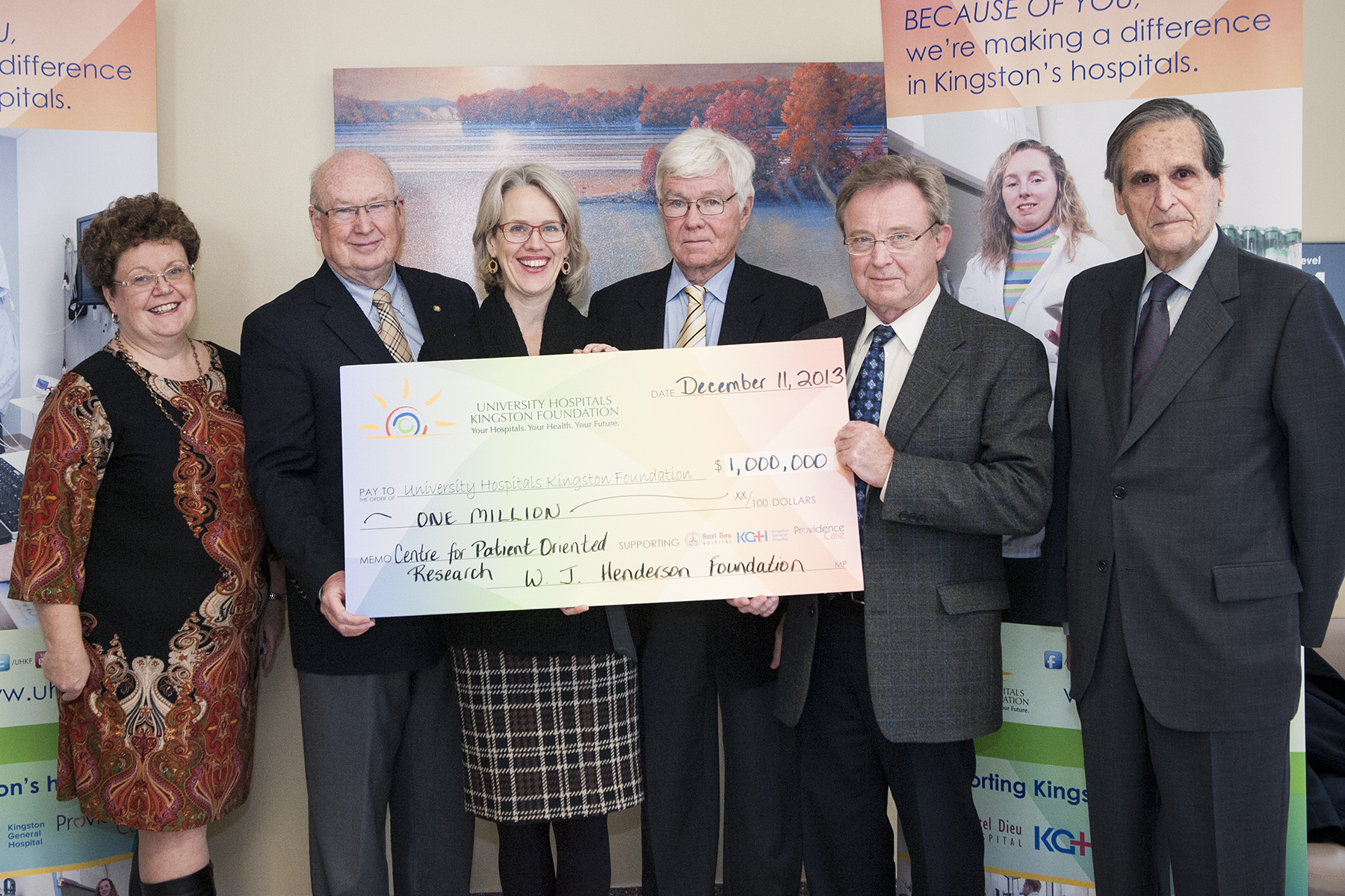 It's not surprising to see a cheque presentation here at Kingston General Hospital, but not often do we see one with this many zeros. The W. J. Henderson Foundation announced that it is donating $1 million to support a state-of-the-art research facility at KGH. The donation, which is the largest ever given by the foundation, will be spread over the next four years. In recognition, the facility will be now known as the W. J. Henderson Centre for Patient-Oriented Research.