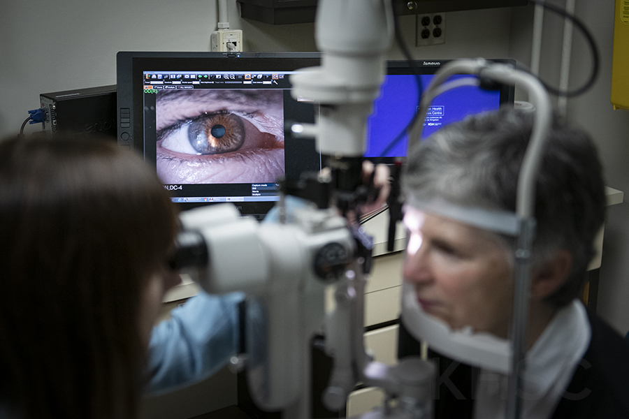 But the latest-generation slit lamp now on site at KHSC packs ramped-up functionality in the form of a high-resolution, digital camera and computer system that lets the physician image the eye in precise detail and to live-feed, record and archive eye exams for real-time and future reference.