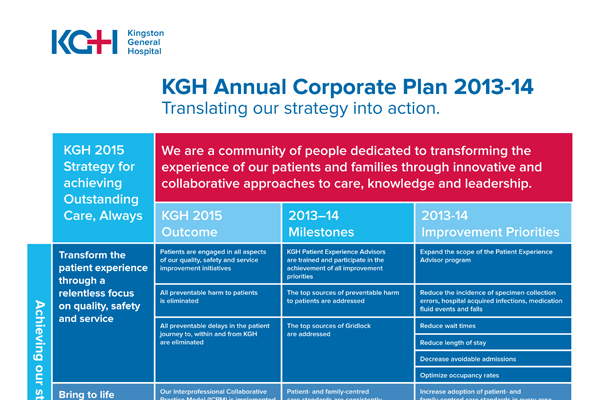 To get a clear picture of what Kingston General Hospital's plans are for next year, all you have to do is check out our latest Annual Corporate Plan. It was recently approved and is now posted on the "Achieving Our Aim" section of our website.