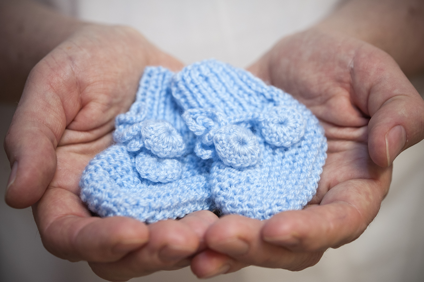 Along with a generous financial donation, members of the Sandra Schmirler Foundation brought a number of hand-knit booties and hats for premature babies in our NICU.