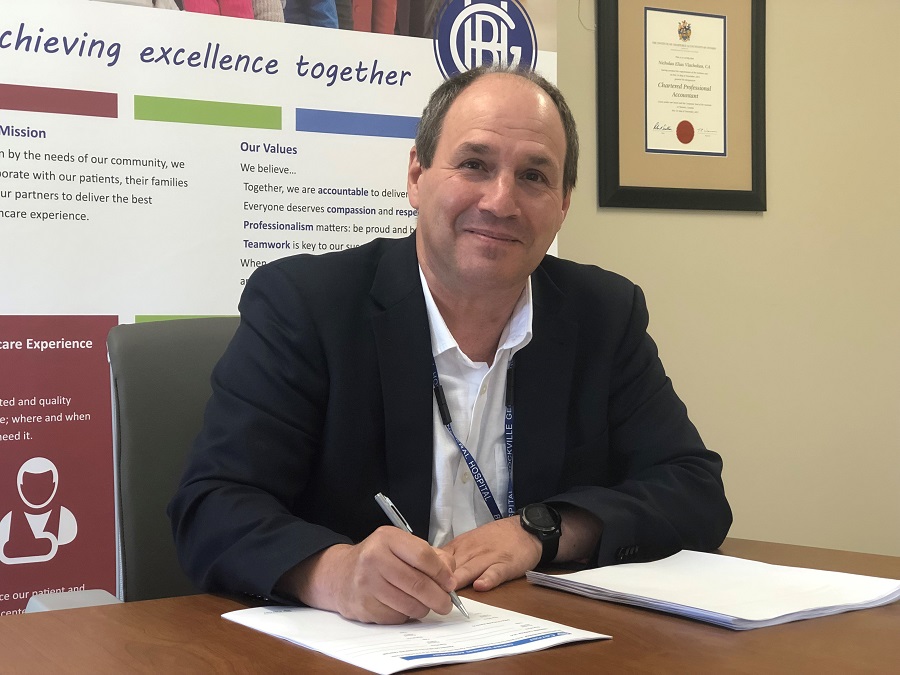 Nick Vlacholias, the regional HIS CEO lead, and Brockville General Hospital’s president and CEO, signing the Cerner contract.