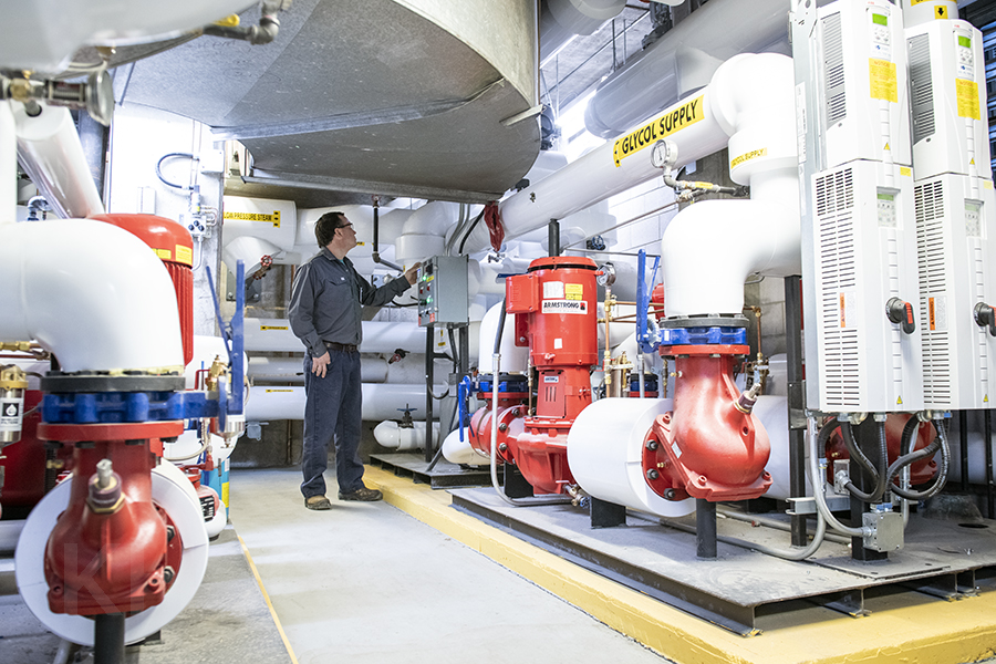 A member of our Facilities team monitors the equipment in our Kidd 2 mechanical room. Many of these spaces at our two hospitals sites, have recently or will soon undergo upgrades thanks to the Hospital Infrastructure Renewal Fund.