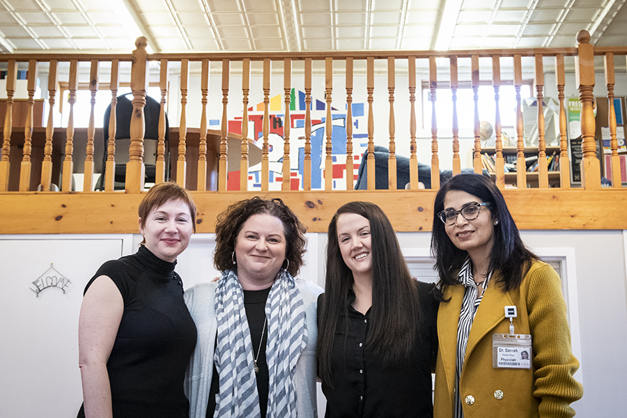 Working together to provide the right support at the right time at a single community-based location. From left to right: Dr. Jennifer Davidson, psychologist; Patricia Marchand, social worker; Ashley O'Brien, One Roof coordinator; and Dr. Sarosh Khalid-Kh