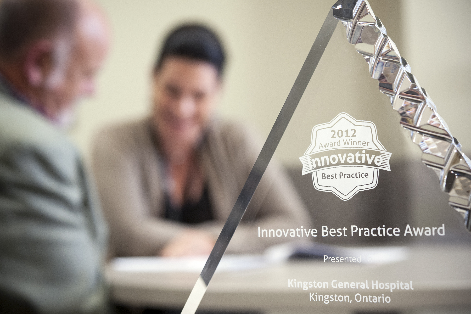 CEO Leslee Thompson accepted it personally on behalf of everyone in the KGH community at an international symposium in Chicago last week. "It was a huge surprise to win this award," says Daryl Bell, lead of our Patient and Family Centred Care initiative. "Just like the accreditation process, it's an incredible feeling to have an outside organization study what you are doing and conclude that you are making a huge difference." NRC Picker says KGH won the first-ever Canadian version of the award for our patient and family-centred care initiative and our Interprofessional Collaborative Practice Model (ICPM). "Everyone at KGH shares in this award," says Patient Experience Advisor Marla Rosen. "It highlights the passion of partnership that exists between KGH and its patients." For the next few weeks, the award will be travelling from floor to floor to give everyone a chance to see and talk about it. After that it will have a permanent home in the Patient Experience Advisor office at KGH.